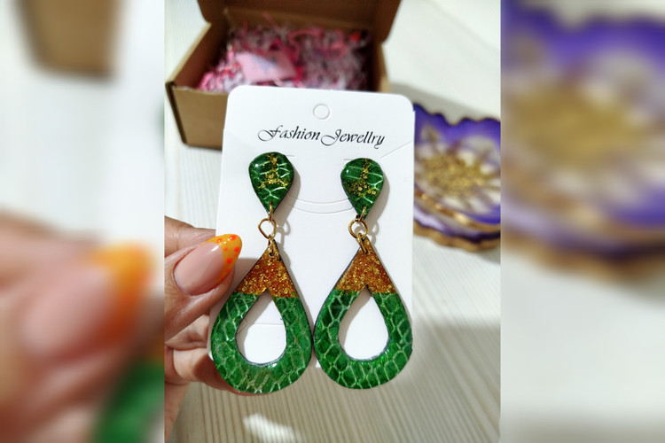 جنس گوشواره ها رزین و روی بیس مولتی استایل کار شده میخی پشت گوشواره استیل و رنگ ثابت و ضد حساسیت هستن