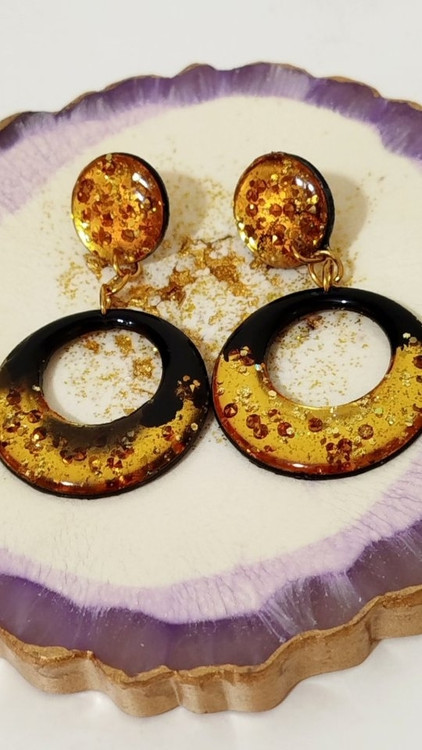 گوشواره رزینی مشکی طلایی خاص و جذاب واقعا از زیبایی و رنگ و براق بودنش هر چی بگم کم گفتم جنس رزین روی بیس مولتی استایل اتصالات به رنگ طلایی و نقره ای تو هر رنگی قابل سفارشه @shakila_resinart دوست دارم نظرتون برام کنی حتما کن کلی کارهای زیبا و متنوع تو پیجم دارم با احترام و تلگرام ارسال به @shakila_resinart #گوشواره_مشکی_طلایی