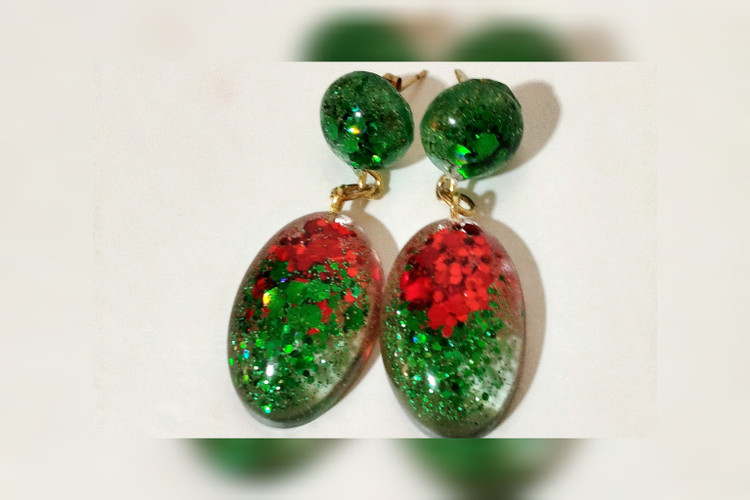 گوشواره یلدایی با اکلیل های قرمز و سبز جنس رزین با اتصالات استیل و رنگ ثابت و ضد حساسیته قابل اجرا در طرح های مختلف