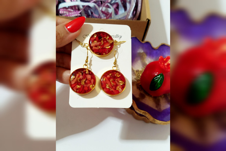 نیم ست گوشواره و گردنبند رزینی شب یلدا